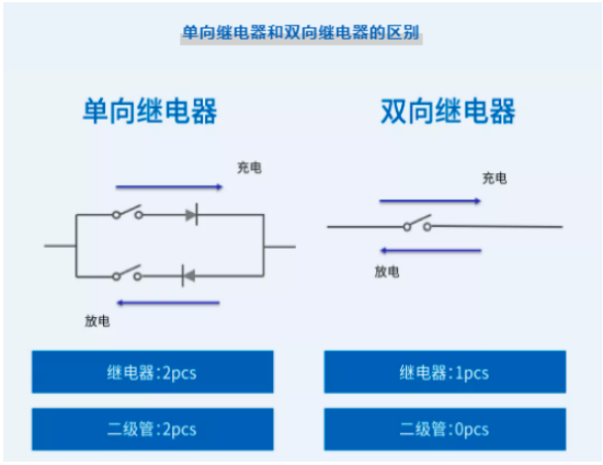 正反極性皆可使用,適用于充電、放電的應用,和普通單向開關的繼電器相比,不僅通過節省部件數量讓電路設計更緊湊,還能節約成本。
