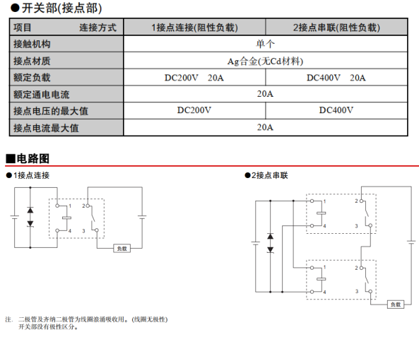 3、可實現無極性的DC200V 20A開閉,通過產品的2接點串聯可實現DC400V 20A開閉,串聯連接已取得UL/TUV/CQC認證,安全可靠;