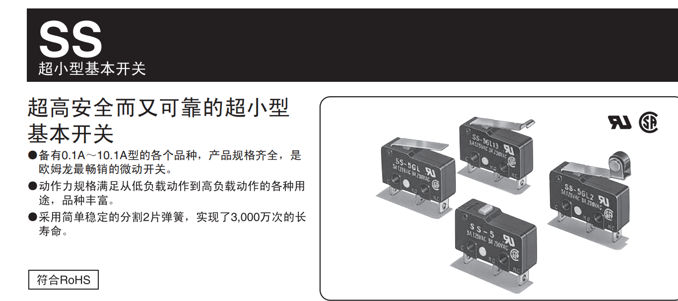 在智能插座中會有用到歐姆龍的微動開關和繼電器,今天我們來說說開關插座中最常用的歐姆龍產品系列,D2LS和SS系列,如下圖