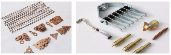工作原理:利用低電壓、高強(qiáng)度的電流流過兩塊鋼板(或鋼板與介子)時(shí)產(chǎn)生的高電阻熱熔化接觸部分的金屬,用焊槍電極擠壓力把它們?nèi)酆虾附釉谝黄穑儆美喂ぞ呷鐟T性錘,實(shí)現(xiàn)修復(fù)板件缺陷的目的。附圖工具:圖1介子墊圈 圖2:碳棒 銅頭