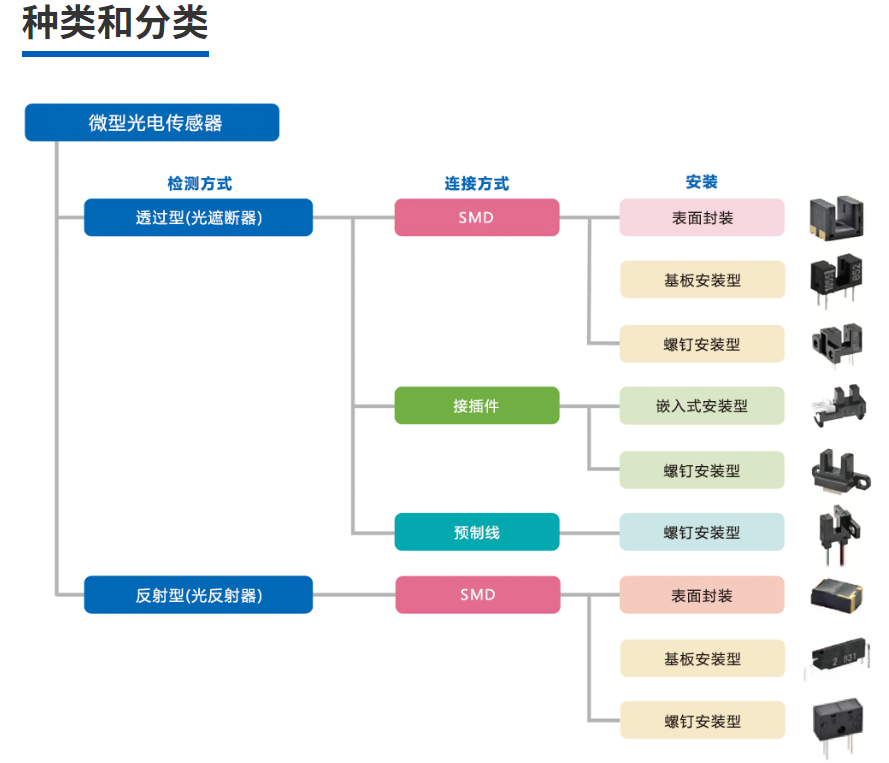 圖1所示是透過型和反射型微型光電傳感器的代表性結構。