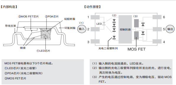 MOS FET繼電器的內(nèi)部構(gòu)造和運(yùn)行原理: