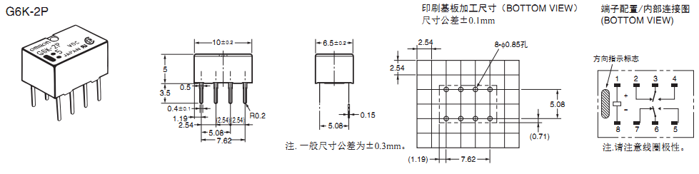 高5.2mm×寬6.5mm×長10mm的超小型,對應高密度封裝(G6K(U)-2F(-Y)型)。