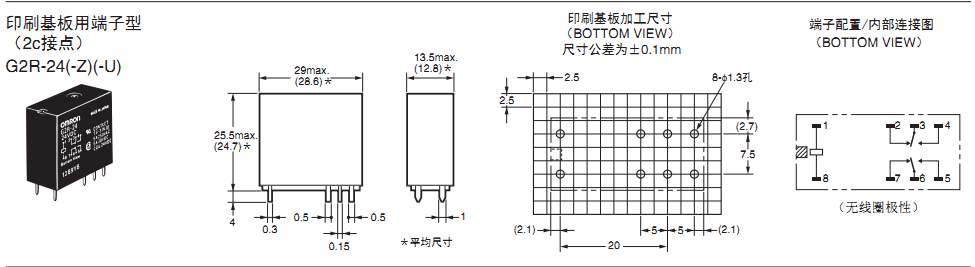 歐姆龍功率繼電器,G2R-24 DC24V,2極5A通用型功率繼電器