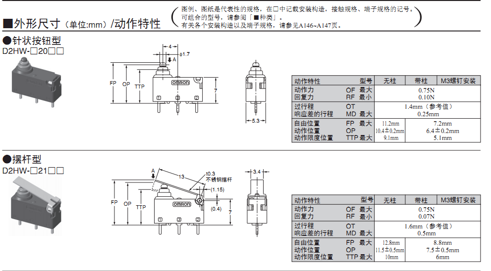 沒有擺桿也同樣使用方便的長行程規格 (OT參考值 :1.4mm)