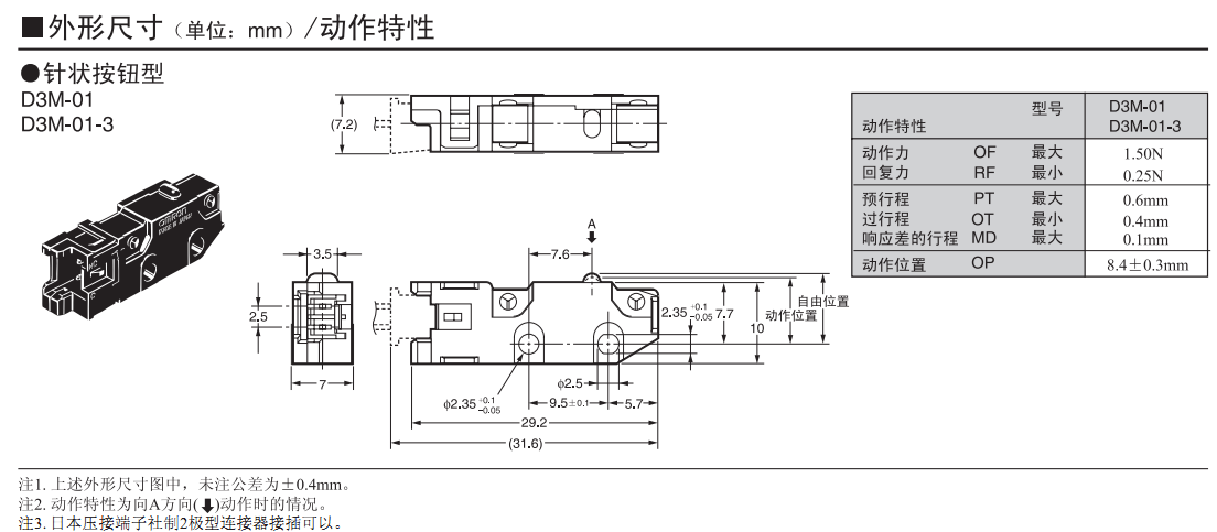 歐姆龍微動開關(guān),D3M-01K1,歐姆龍微動開關(guān)D3M