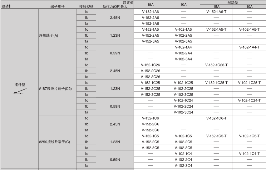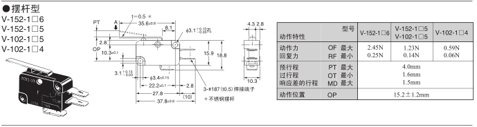 歐姆龍微動開關,V-152-1C25,歐姆龍微動開關V-15