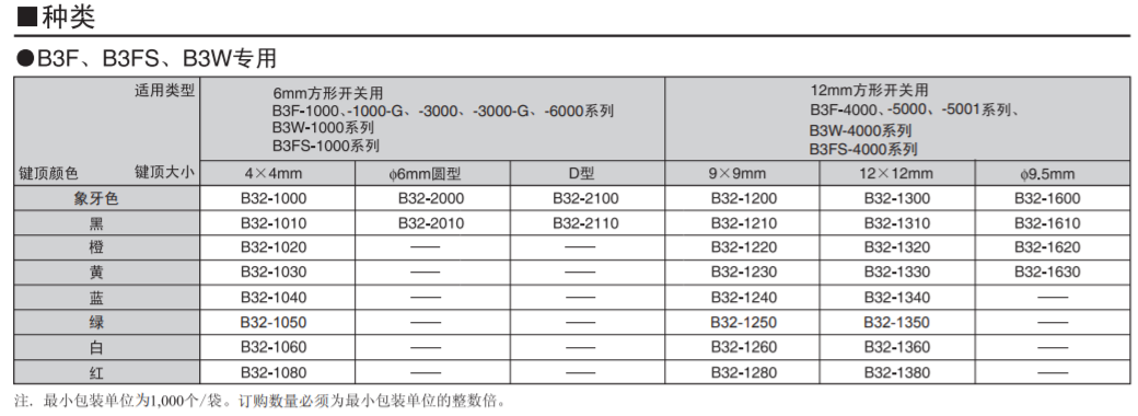 B3F-4050按鍵帽子B3F、B3FS、B3W的凸型柱塞類型專用鍵頂
