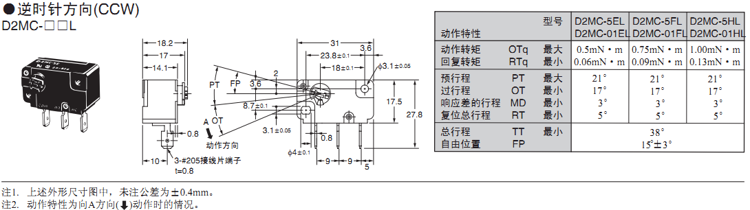 D2MC 輕轉(zhuǎn)矩基本開(kāi)關(guān)