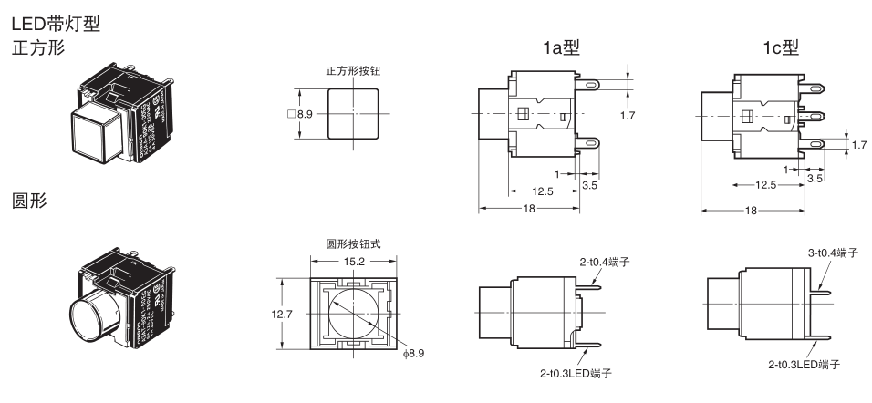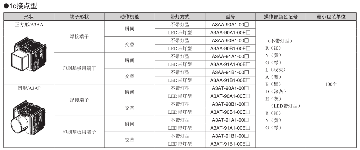歐姆龍按鈕開關, A3AT-90A1-00R,歐姆龍按鈕開關A3A