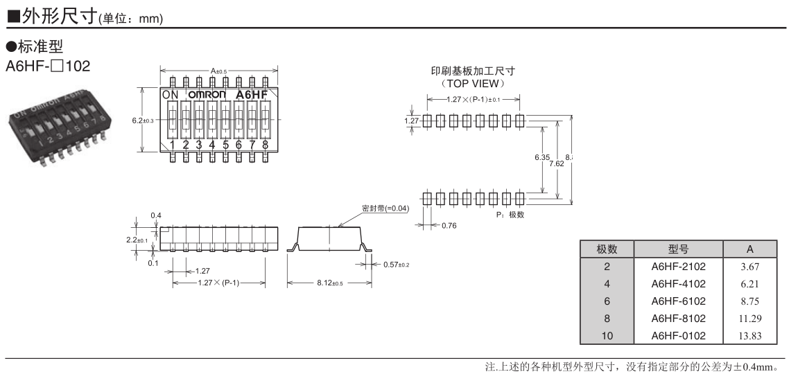 歐姆龍DIP開(kāi)關(guān), A6HF-2102,歐姆龍DIP開(kāi)關(guān)A6HF