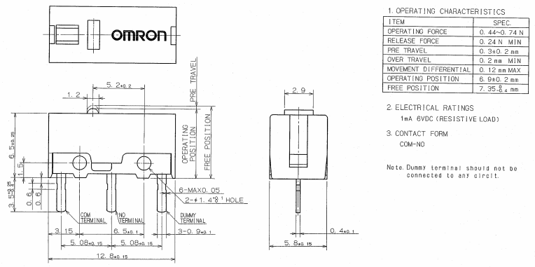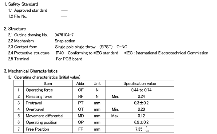 D2FC-F-7N (20M) 克力為:60+/-15G,壽命為2000萬(wàn)次;
