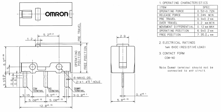 D2FC-F-7N, 克力為:60+/-15G,壽命為500萬次;
