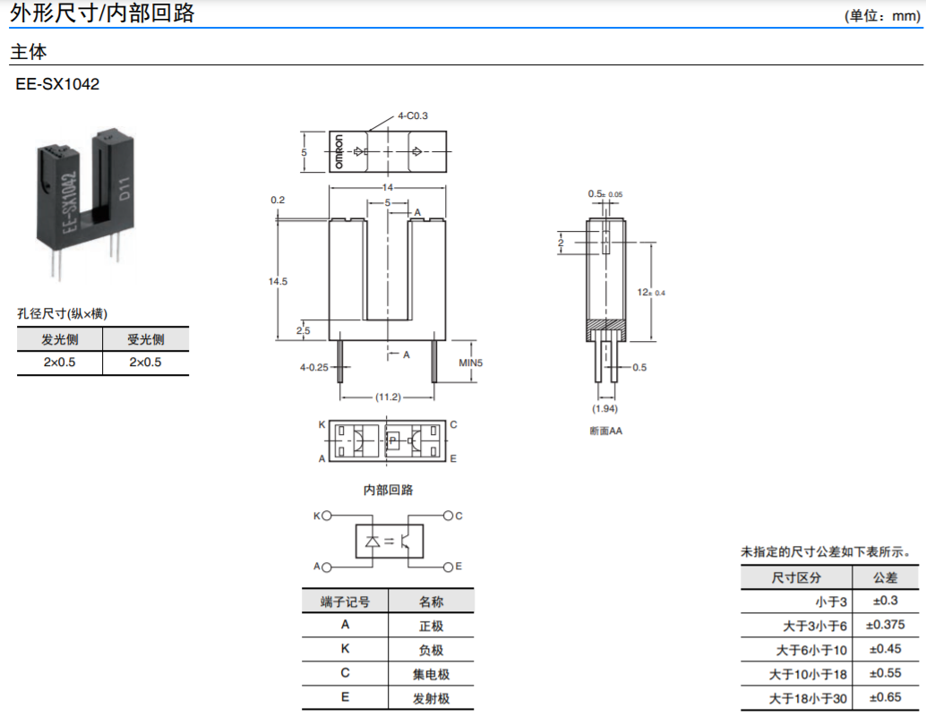 EE-SX1042歐姆龍傳感器 (槽寬:5mm)