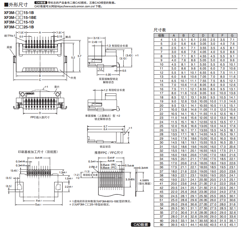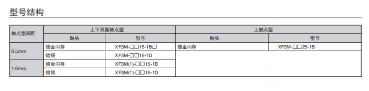 接點構造備有雙面觸點型和上觸點型兩種。 (上接點型只有0.5mm間距)
