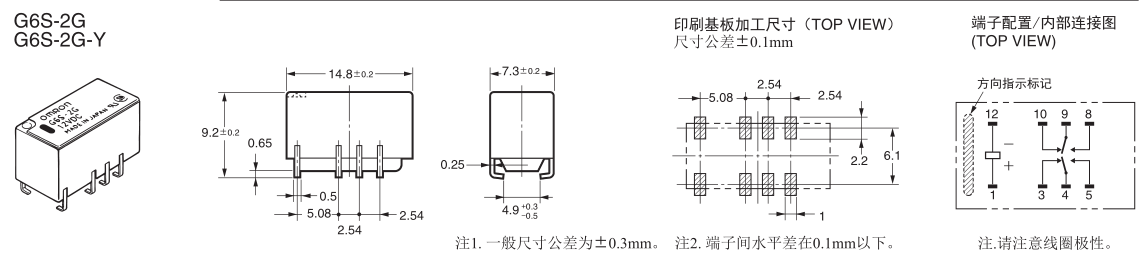 歐姆龍小型信號繼電器,G6S-2G-Y DC5V,歐姆龍信號繼電器G6S