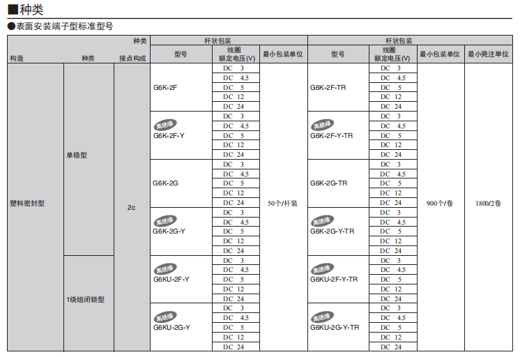 •  高5.2mm×寬6.5mm×長10mm的超小型,對應高密度封裝(G6K(U)-2F(-Y)型)