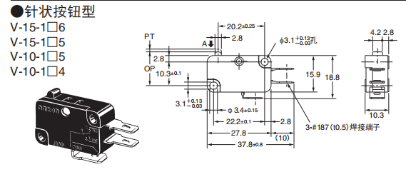 焊接端子(A) SPDT 3.92N V-15-1A6 --- V-15-1A6-T ---