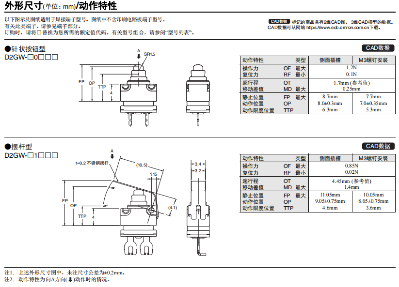 • 超小型微動(dòng)開(kāi)關(guān)D2GW系列