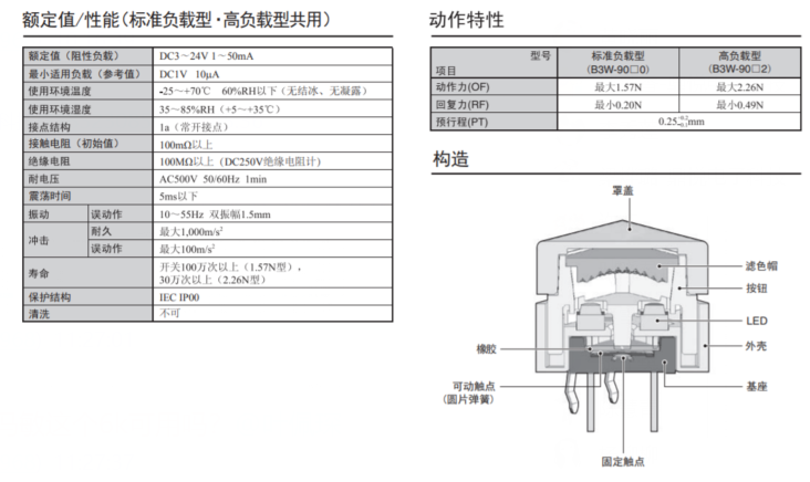具有標準操作負載(1.57N)與高操作負載(2.26N)兩種類型。