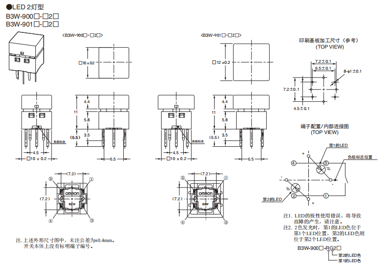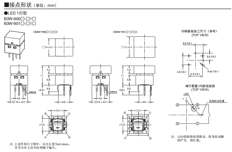 小型尺寸(10mm/12mm×高度11mm),實現亮度均勻的發光。