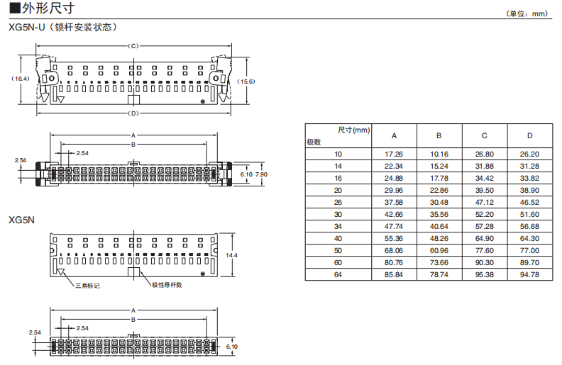 OMRON的帶鎖扣插座(XG5N-U),單手插拔即可,并且可以牢固地鎖緊。