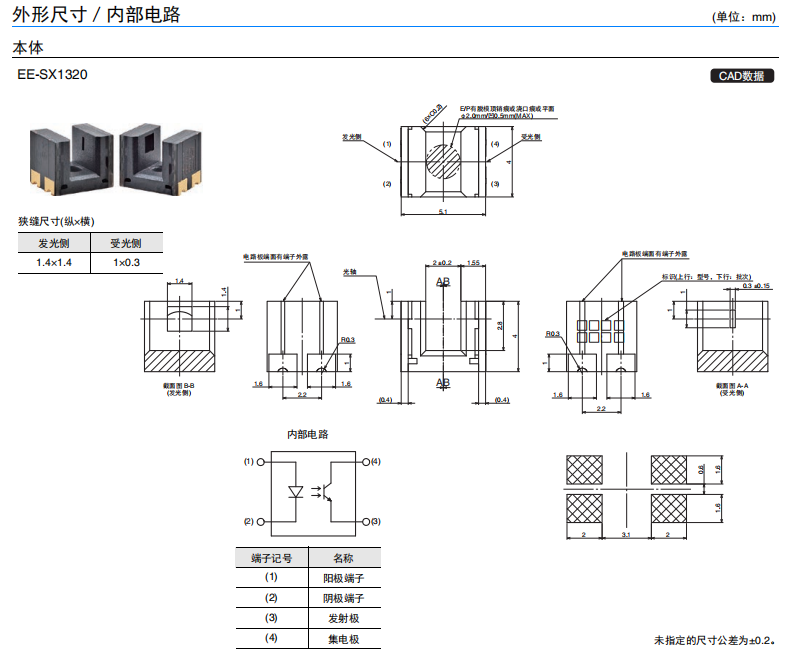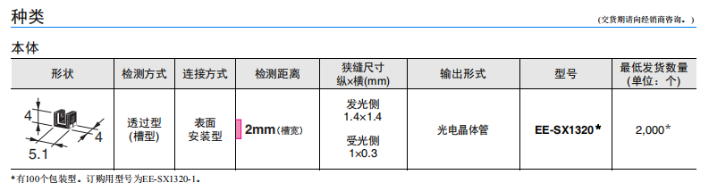 槽型光電開關EE-SX1320(槽寬:2mm)