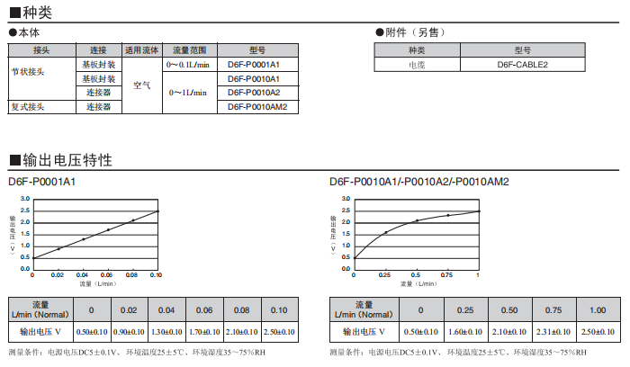 • D6F-P 流量傳感器0~1L/min
