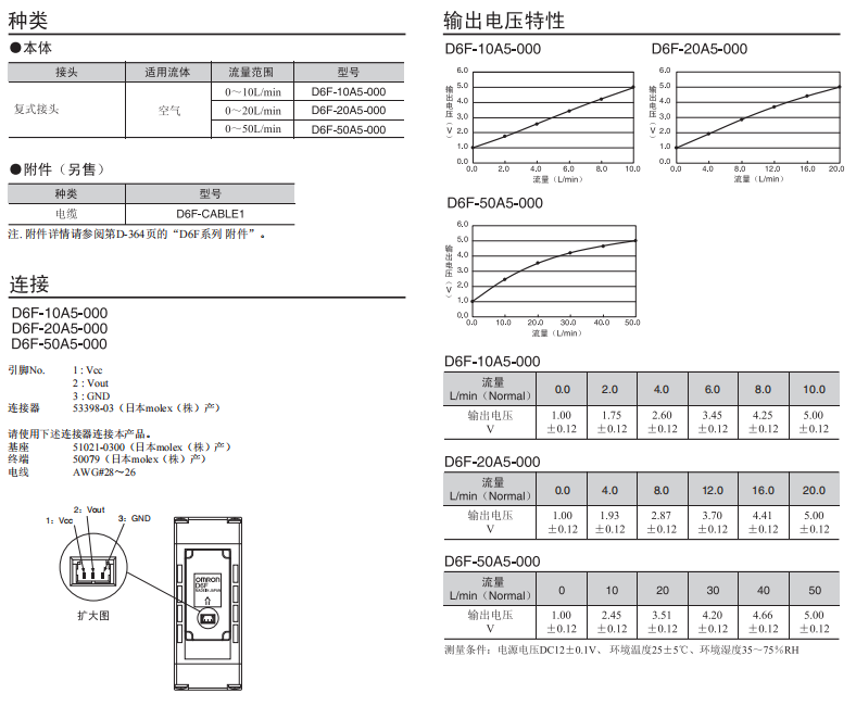 • D6F-A5空氣流量傳感器0-50L/min